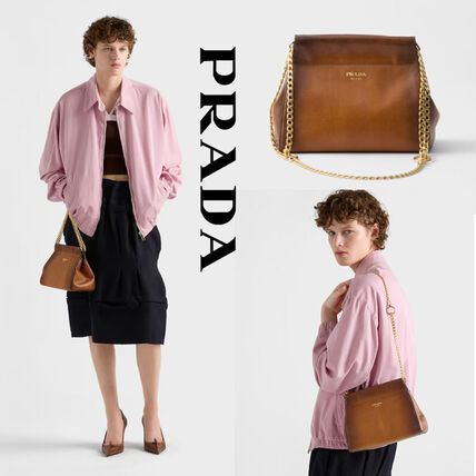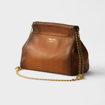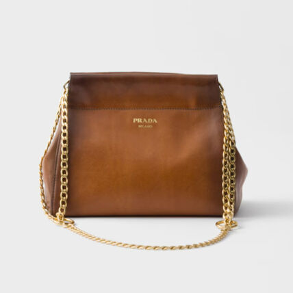 新作【PRADA】プラダ アンシェネ レザー ミニバッグ、コニャック