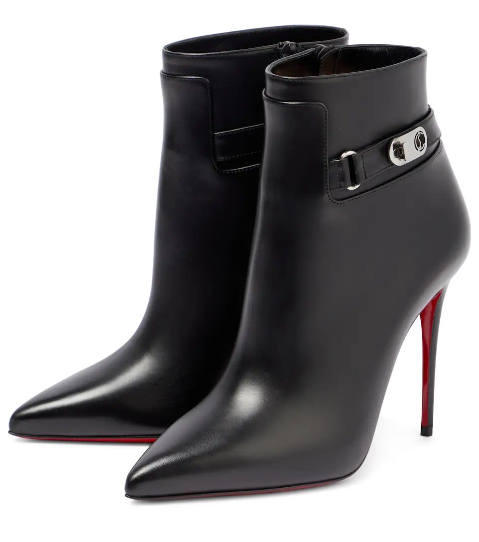 Invest in a wardrobe classic as Christian Louboutin crafts its striking So Kate ankle boots from black leather. This pointed-toe silhouette is set on 100mm stiletto heels and finished with tiny buckles.