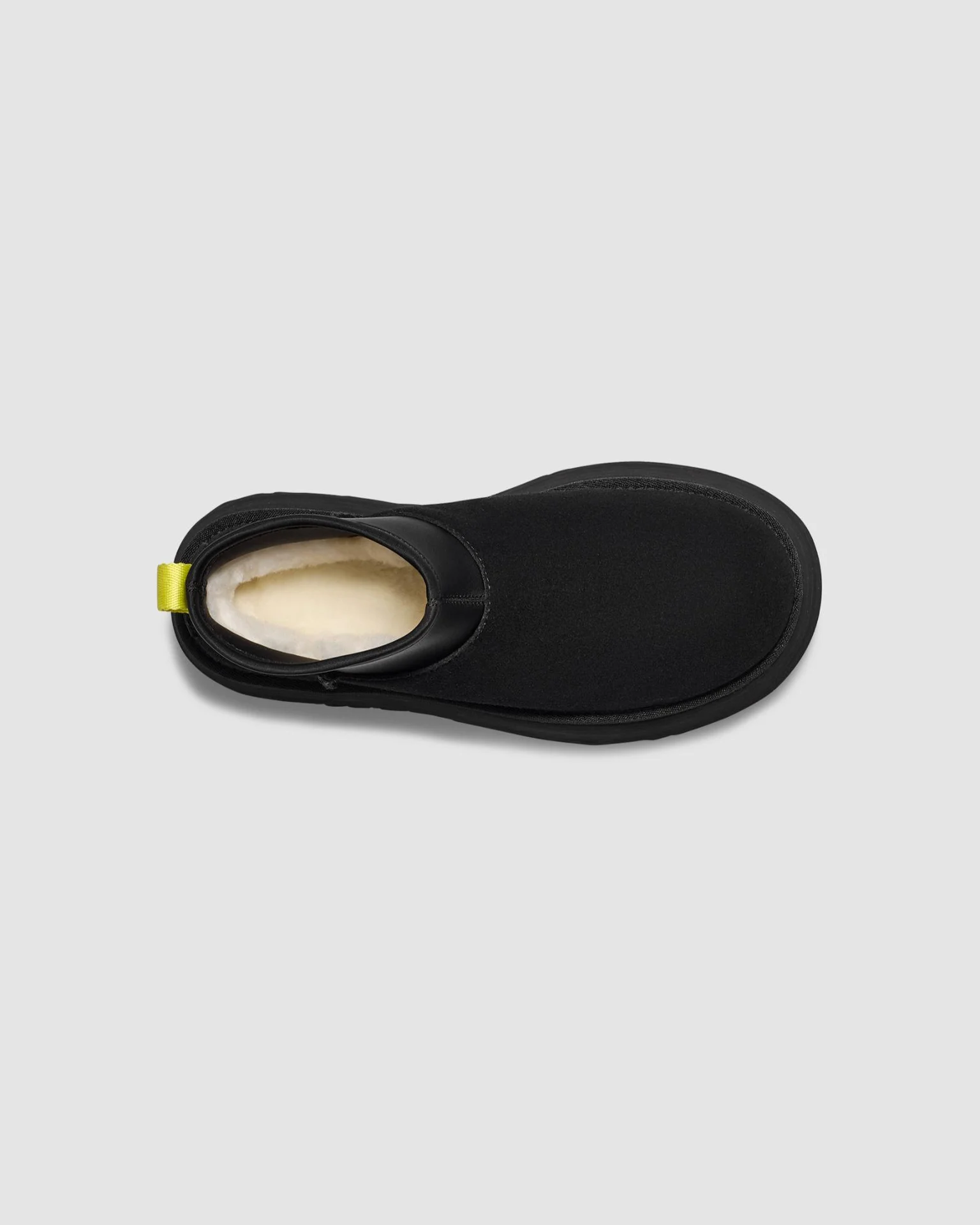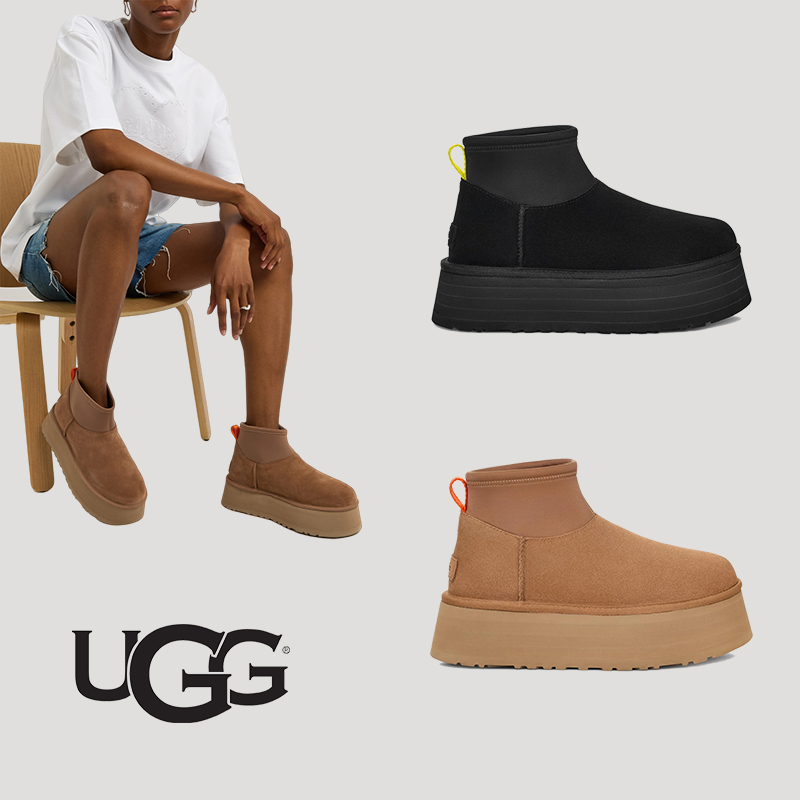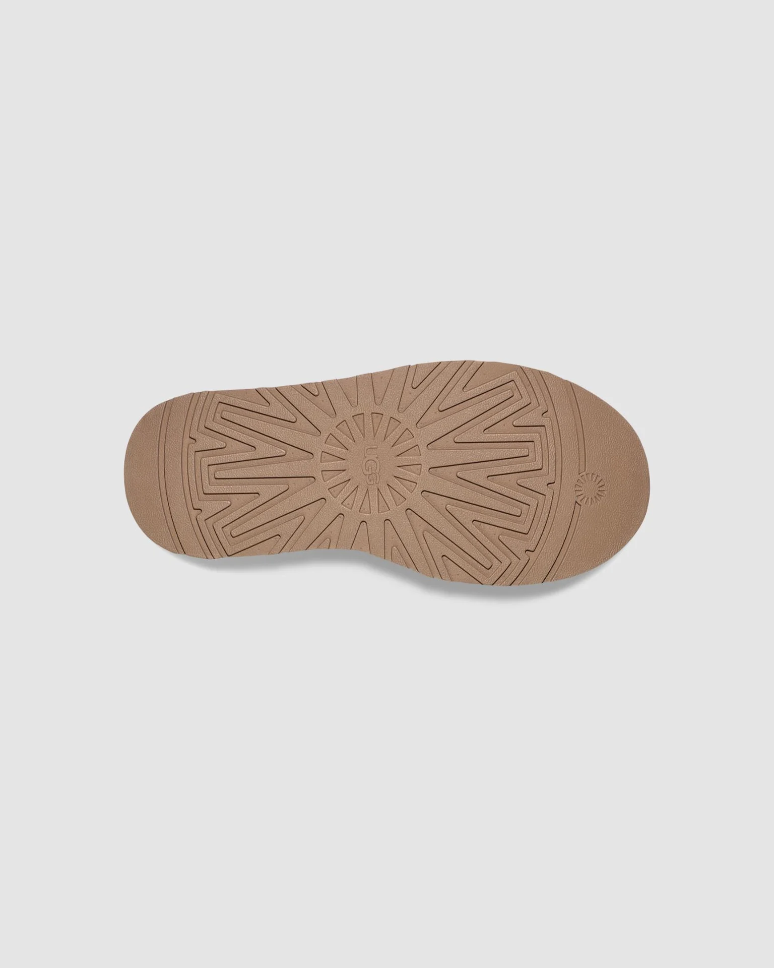 詳細スエードとネオプレンのアッパースエードのヒールカウンター100%リサイクルポリエステル繊維で作られたリアプルタブ60%アップサイクルウールと40%テンセル™リヨセルで作られた17mmのUGGplush™ライニング100%リサイクルポリエステル繊維で作られたテキスタイルバインディングエンボス加工されたUGGロゴが入ったスエードヒールラベル