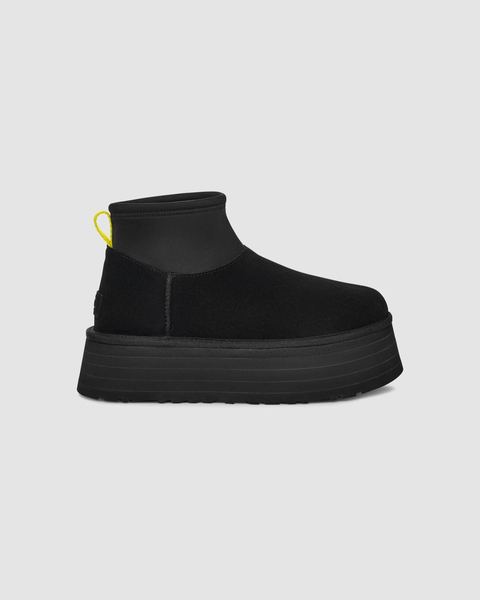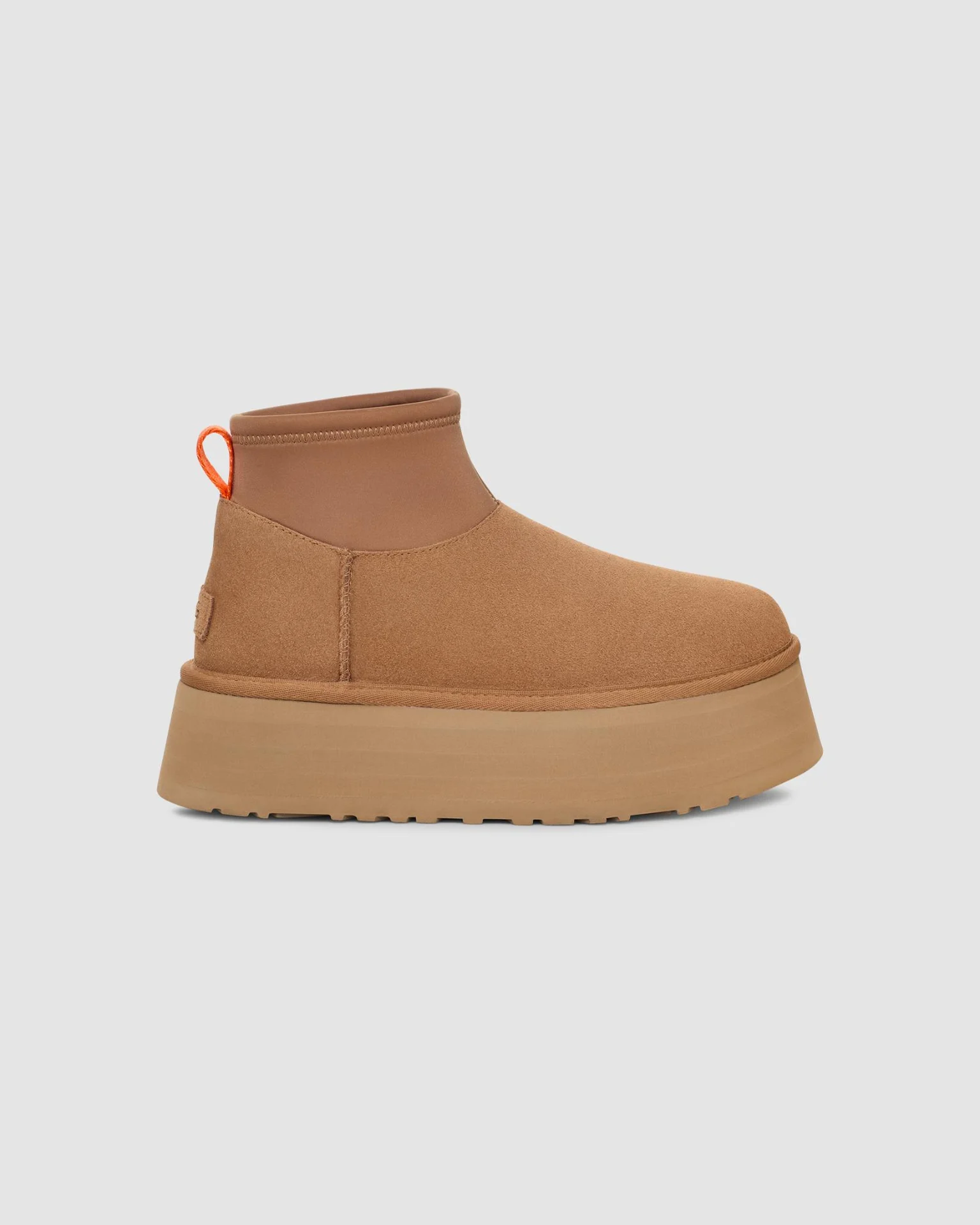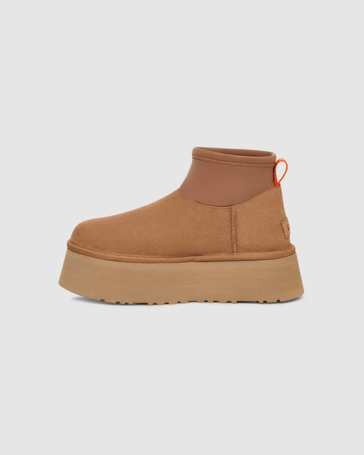詳細スエードとネオプレンのアッパースエードのヒールカウンター100%リサイクルポリエステル繊維で作られたリアプルタブ60%アップサイクルウールと40%テンセル™リヨセルで作られた17mmのUGGplush™ライニング100%リサイクルポリエステル繊維で作られたテキスタイルバインディングエンボス加工されたUGGロゴが入ったスエードヒールラベル
