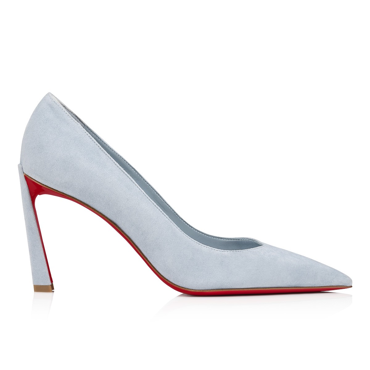 The Condora loafer has a pointed toe like a bird's beak. This sophisticated style in Paseo grey veau velours has a daring low-cut vamp revealing the foot. It has an 100 mm slanted heel, showcasing Maison Christian Louboutin's innovative creativity. Slender lines and graphic elements create an elegant finish.