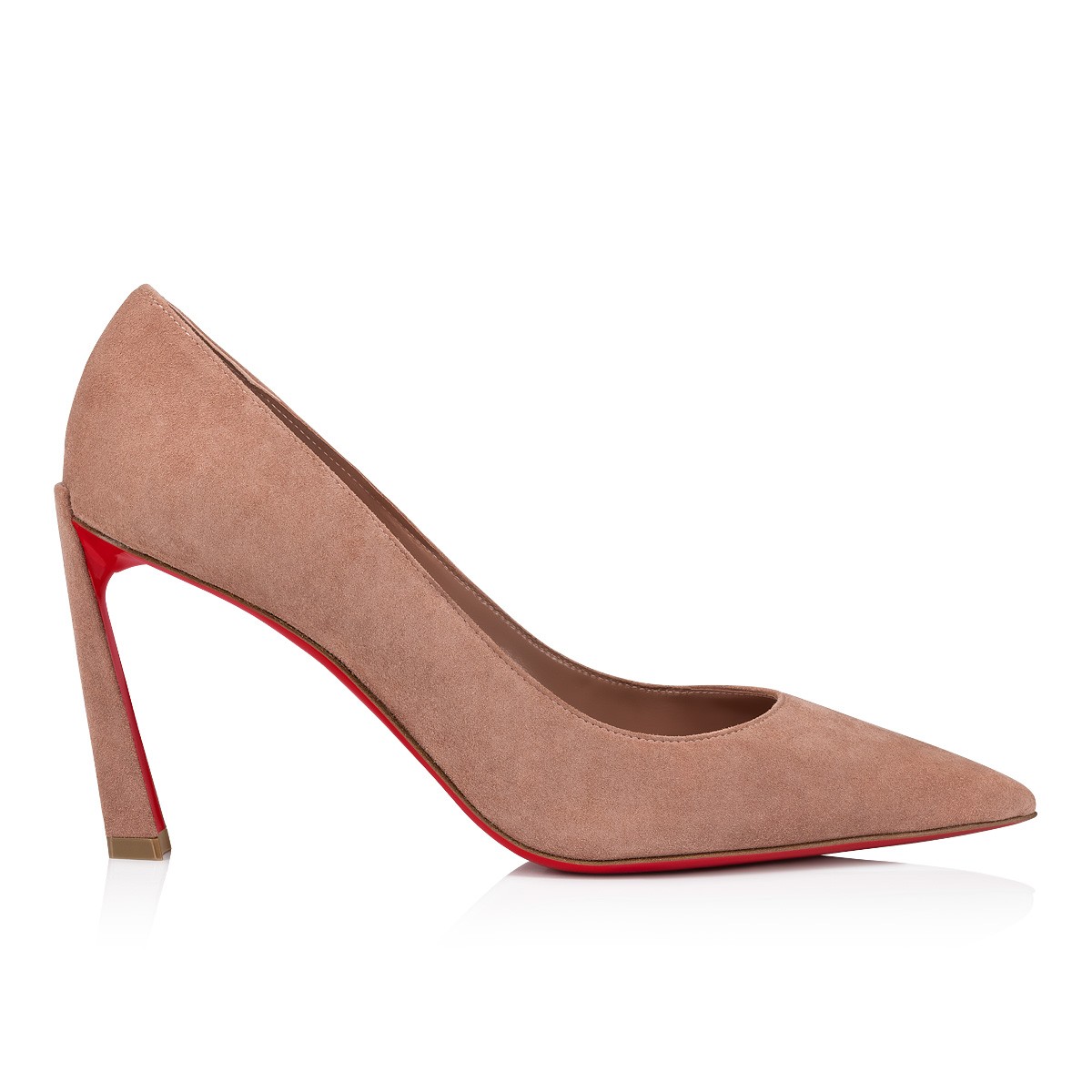 The Condora loafer has a pointed toe like a bird's beak. This sophisticated style in Tornado brown veau velours has a daring low-cut vamp revealing the foot. It has an 100 mm slanted heel, showcasing Maison Christian Louboutin's innovative creativity. Slender lines and graphic elements create an elegant finish.