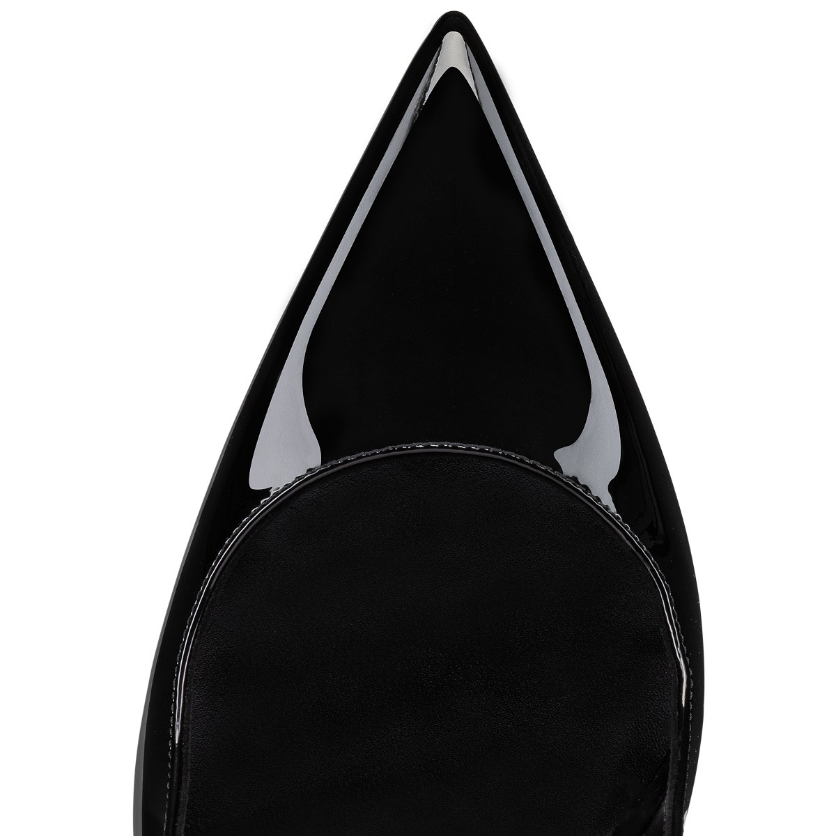 The Condora Sling pump has a pointed toe like a bird's beak. This sophisticated style in black patent leather has a daring low-cut vamp revealing the foot. It has a 100 mm slanted heel, showcasing Maison Christian Louboutin's innovative creativity and a slender ankle strap. With its sleek lines playing with graphic elements, this loafer exudes timeless elegance.