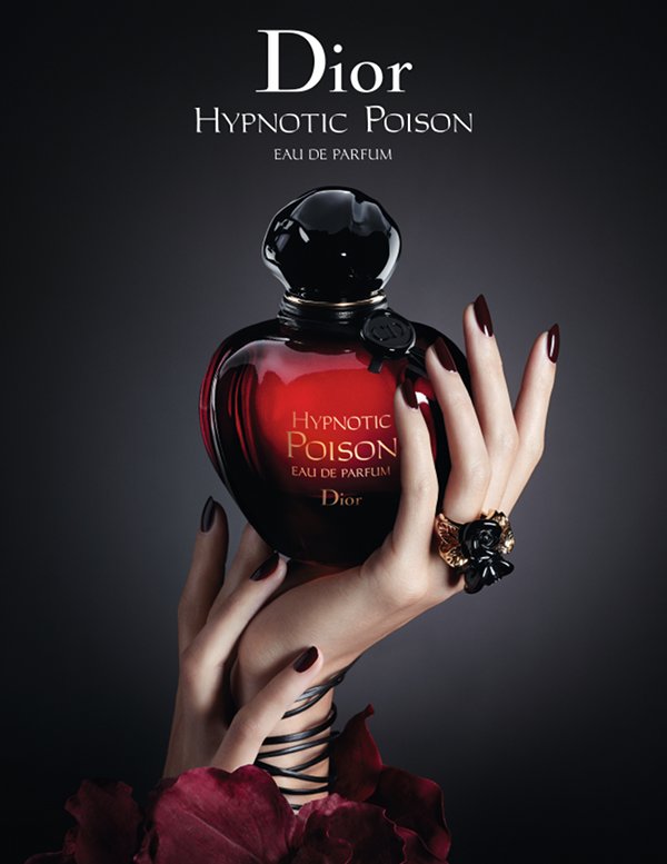 The bottle of Hypnotic Poison—fragrance of mystery—is an absolute icon, sultry incarnation of the forbidden fruit, tempting red apple. Its glass appears possessed with molten lava.