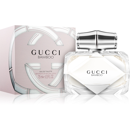 Gucci Bamboo Eau de Toilette is a fragrance for women created by Gucci. This scent is a light and fresh interpretation of the original Gucci Bamboo Eau de Parfum, and is said to embody the essence of natural strength, femininity, and confidence. The scent features top notes of bergamot, orange blossom, and ylang-ylang, middle notes of casablanca lily, Comoros ylang-ylang, and Tahitian tiare flower, and base notes of sandalwood, Tahitian vanilla, and grey amber. It is available in a 75ml bottle.