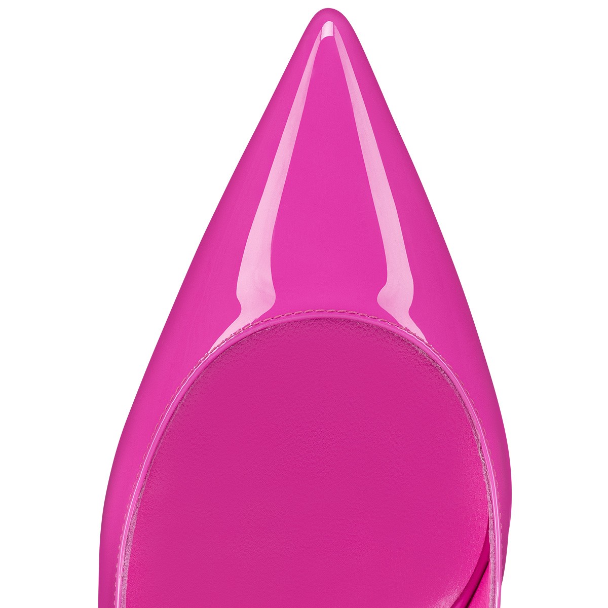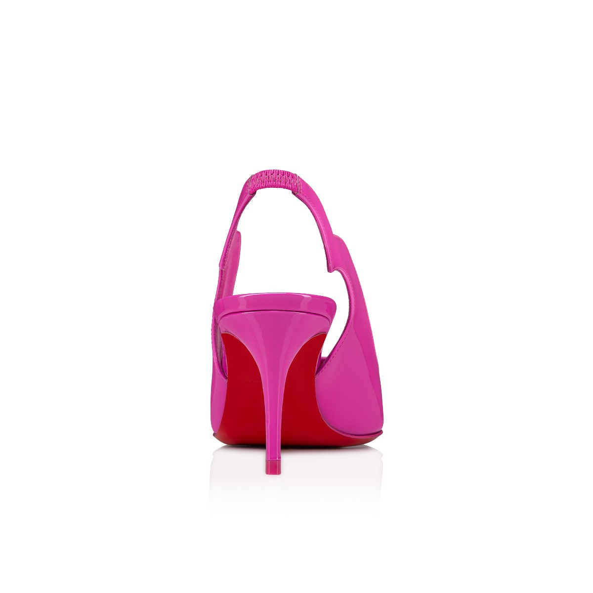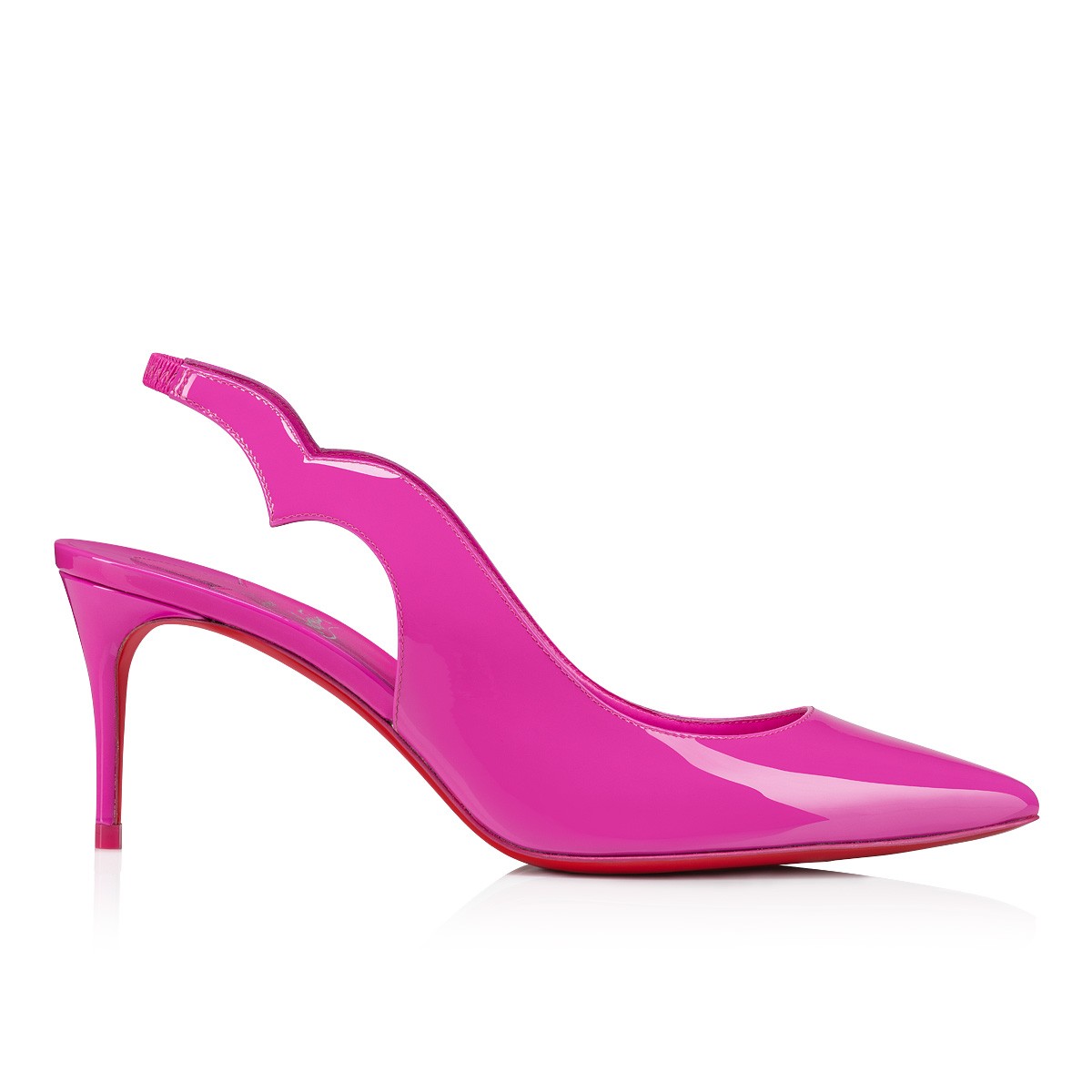 The elegant Hot Chick Sling echoes the lines of Maison Christian Louboutin's iconic Hot Chick stiletto. This slingback pump features a 70 mm slender heel and an exquisite, scalloped, cut-out design on the underside of the ankle strap. A pointed toe adds a hint of daring. This sophisticated model is crafted in glossy patent leather in Bolerose pink for a summery appeal.