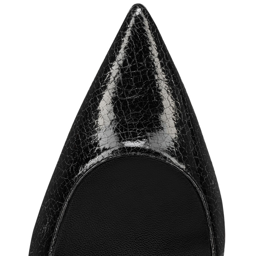 光沢感のあるスペッキオブラックで装いを一新し、アイコニックなポインテッドトゥと85mmのスティレットヒールが洗練されたシルエットを引き立てます。