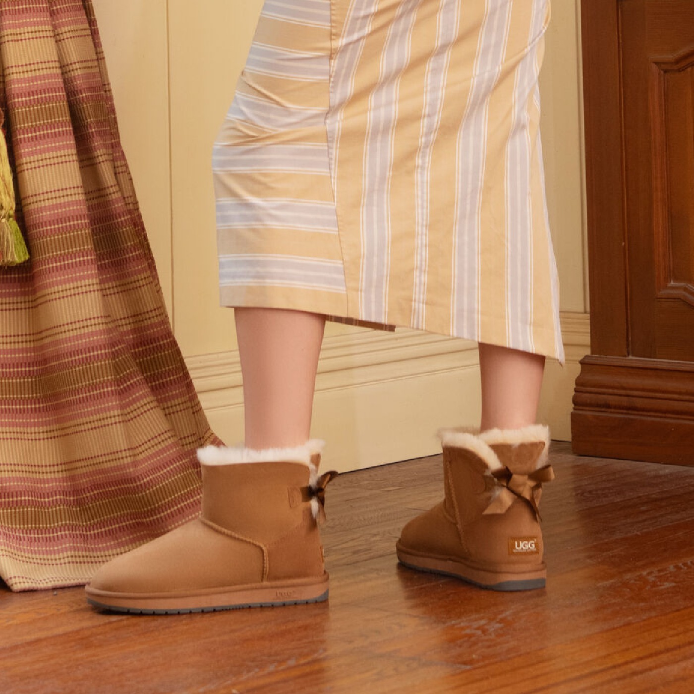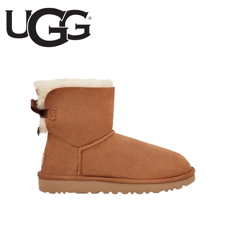 詳細商品番号 1016501※UGGでは公式サイトでのみお買い求めいただけますキュートなバックリボンが人気のミニ丈ブーツに機能性をプラスしアップデートしたMINI BAILEY BOW II(ミニベイリーボウ II)。ラグジュリアスなツインフェイスシープスキンのアッパーには撥水・防汚加工を施し、アウトソールには軽量でクッション性やグリップ力に優れたTreadlite by UGG™を採用。長年愛され続けているシルエットはそのままに、より魅力的に進化させました。・アッパー:17mmのツインフェイスシープスキン(撥水加工)・ライニング:17mmのシープスキン・インソール:シープスキン・アウトソール:Treadlite by UGG™ *・シャフト高さ:約14cm・シャフト後部にサエンリボン、スエードのヒールカウンター・ヒールにUGGロゴをエンボス加工したレザーラベル*Treadlite by UGG™(トレイドライト バイ アグ):軽さと柔軟性・耐久性・クッション性とグリップ感を高めた新構造のアウトソール※素材の風合いを損なわないよう染色しております為、色の個体差や摩擦・湿気などによる色落ち・色移りの可能性がございます。ご使用時や収納の際にはご注意ください。