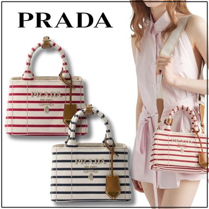 PRADA Jardiniere ストライプコットンキャンバス ミニバッグ 2色
