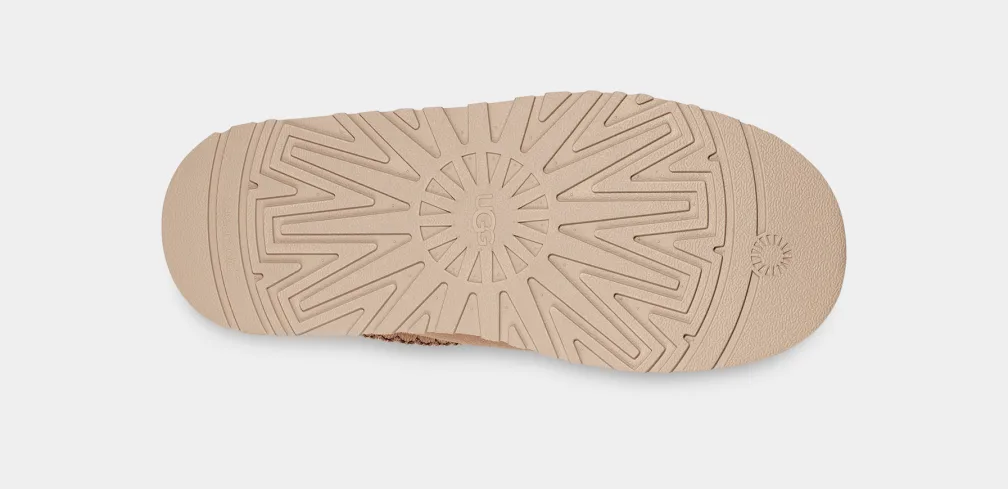 UGG®のタイムレスなスリッパTasman(タスマン)を大胆にアレンジしたTazz(タズ)は、約4.4cmのプラットフォームソールで定番シルエットをリフレッシュ。オリジナルと同じリッチなスエードで作られ、UGG®のシグネチャーであるUGGplush™ウールブレンドのライニングが施され、厚底ソールでもクッション性が高く、屋内外を問わず、スリッパのような履き心地を楽しめます。