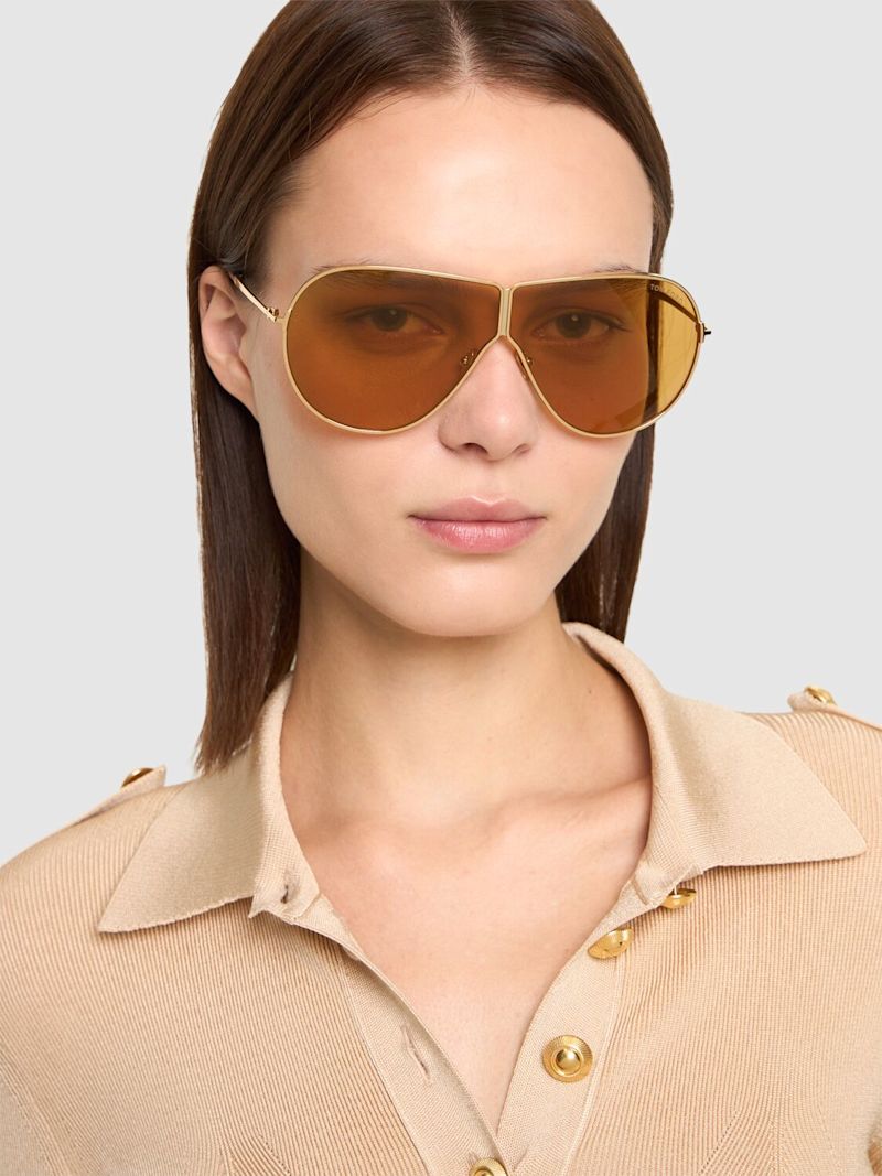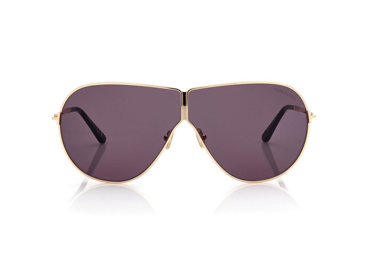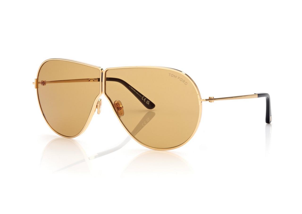 METAL PILOT FRAME WITH AN UNCONVENTIONAL LENS DESIGN AND SLIM TEMPLES. LENSES IN THE BRAND’S ICONIC GOLD-TONE SHADE.