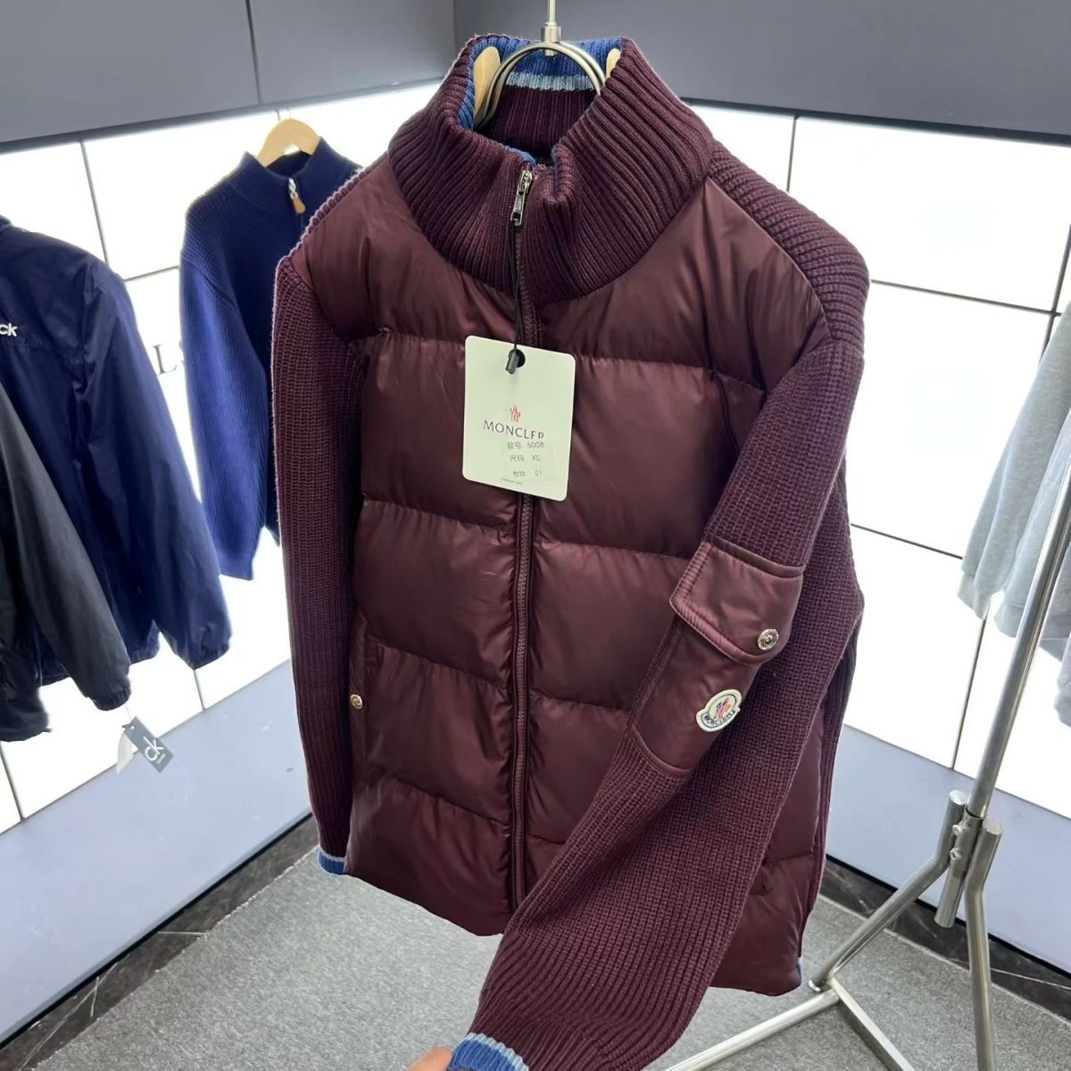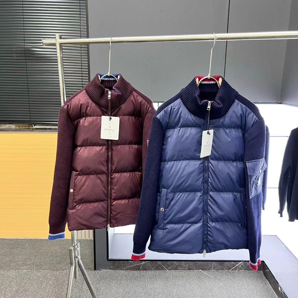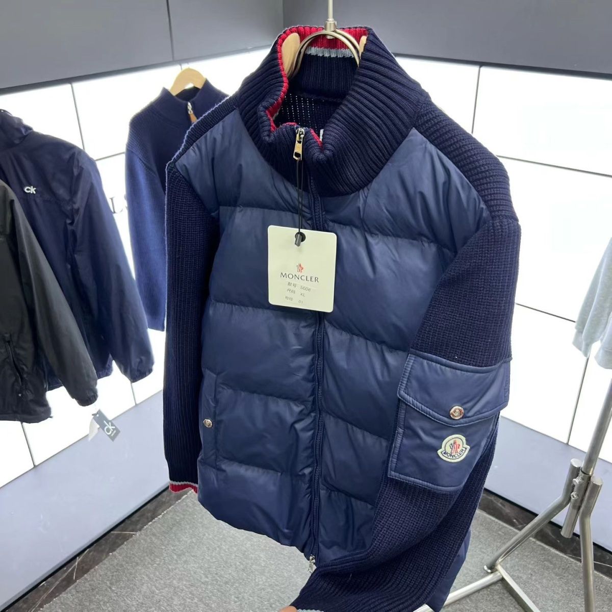 【モンクレール】Moncler スタンドカラーの冬用ニットパッチワークコート