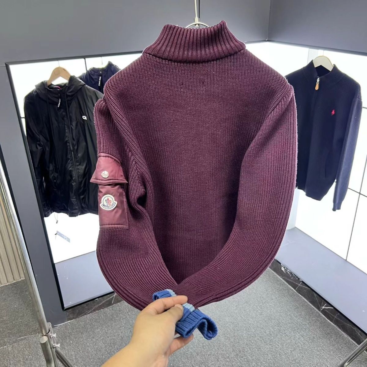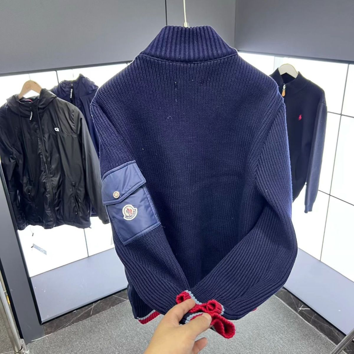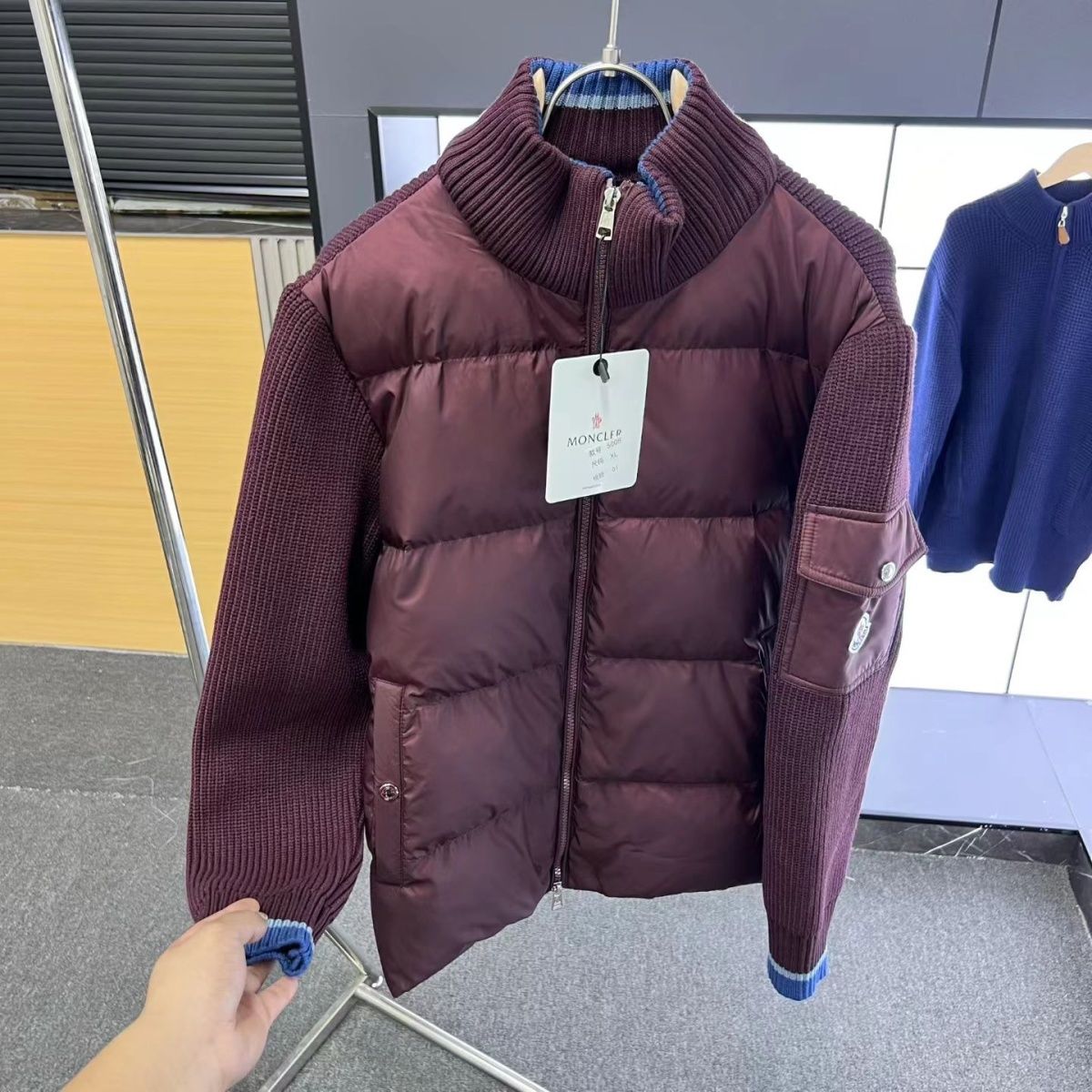 【モンクレール】Moncler スタンドカラーの冬用ニットパッチワークコート