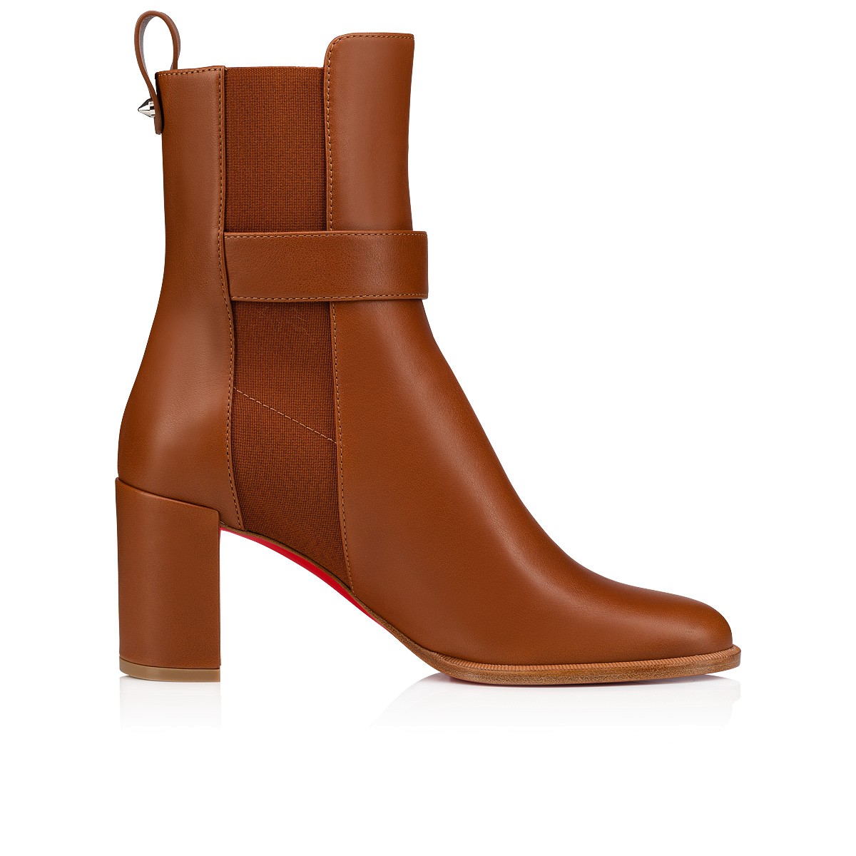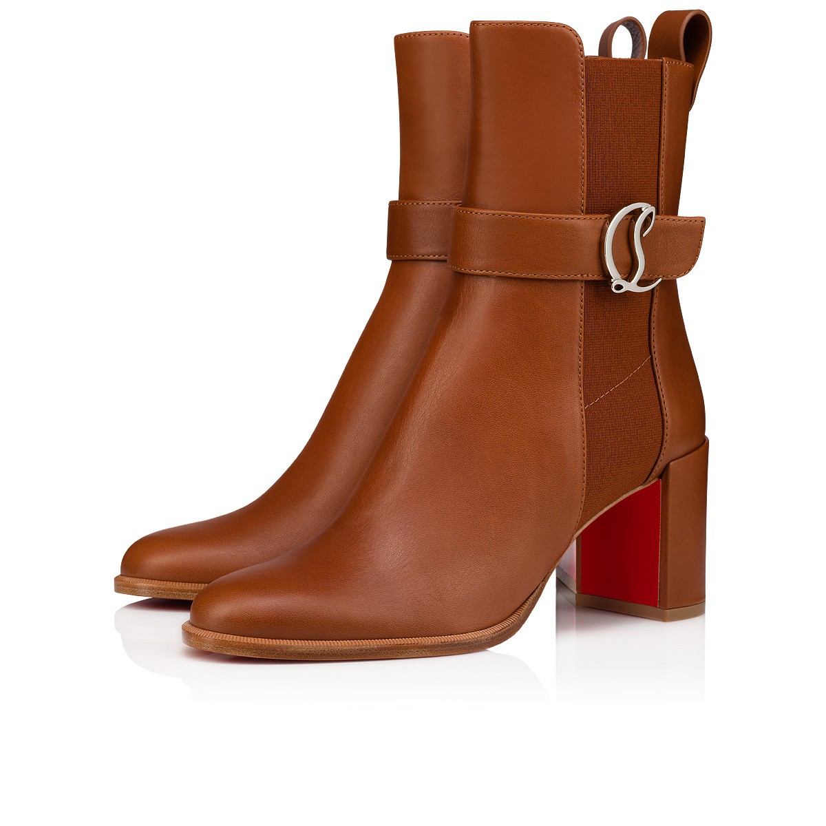 クリーンなラインとタイムレスなエレガンスが魅力のブーティ、CL Chelsea。アーモンドシェイプに伸縮性のあるインサートをサイドにあしらい、Cuoioブラウンのカーフレザーで仕立てました。シルバーメタルで象ったCLモノグラムで飾ったストラップ付きの、70㎜ヒールです。クリスチャン ルブタンならではのシグネチャースパイクを添えたヒールタブが、都会的な雰囲気を演出します。