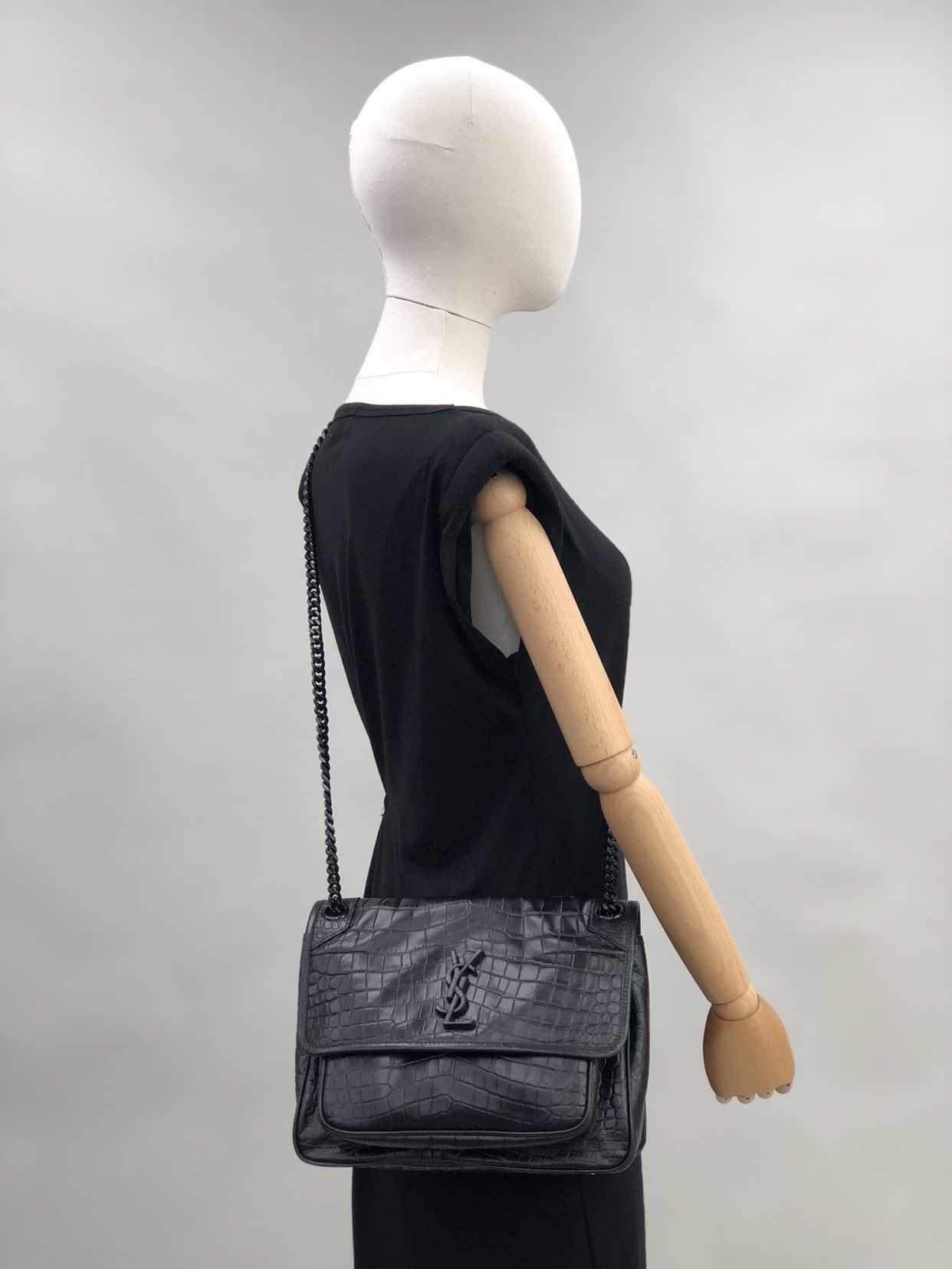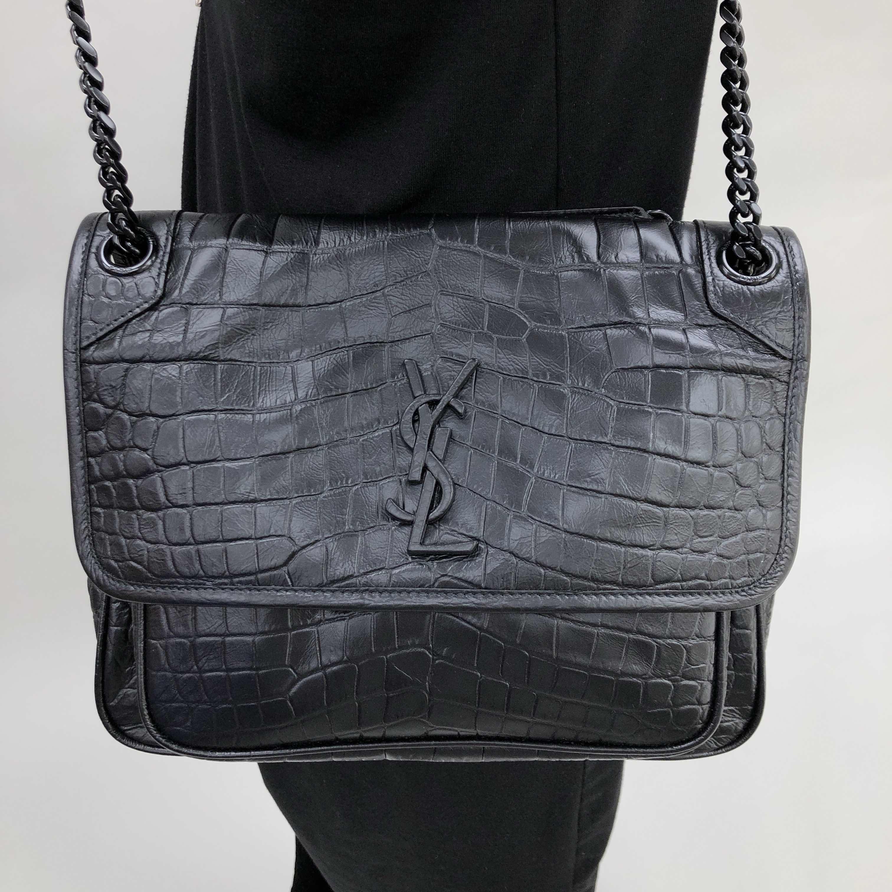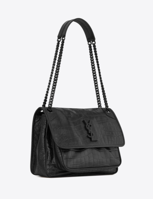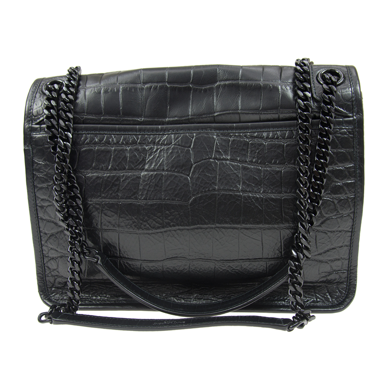サンローランモノグラムのフロントフラップハンドバッグ、金属で覆われたYSLロゴ、チェーンとレザーのショルダーストラップ、2つの着用方法。片付け牛革サイズ:28 X 20 X 8,5 CMマットブラックメタルアクセサリーキャンバスの裏地磁気スナップインテリア:中央コンパートメント1つ、ジッパーポケット1つ、フラットポケット1つ、オープンフロントポケット1つ背面にマグネット式の開閉装飾が施されたフラットバッグシングルベルトの高さ:53cm裏地ベルトの高さ:30cm商品番号5489421K00U1000イタリア製